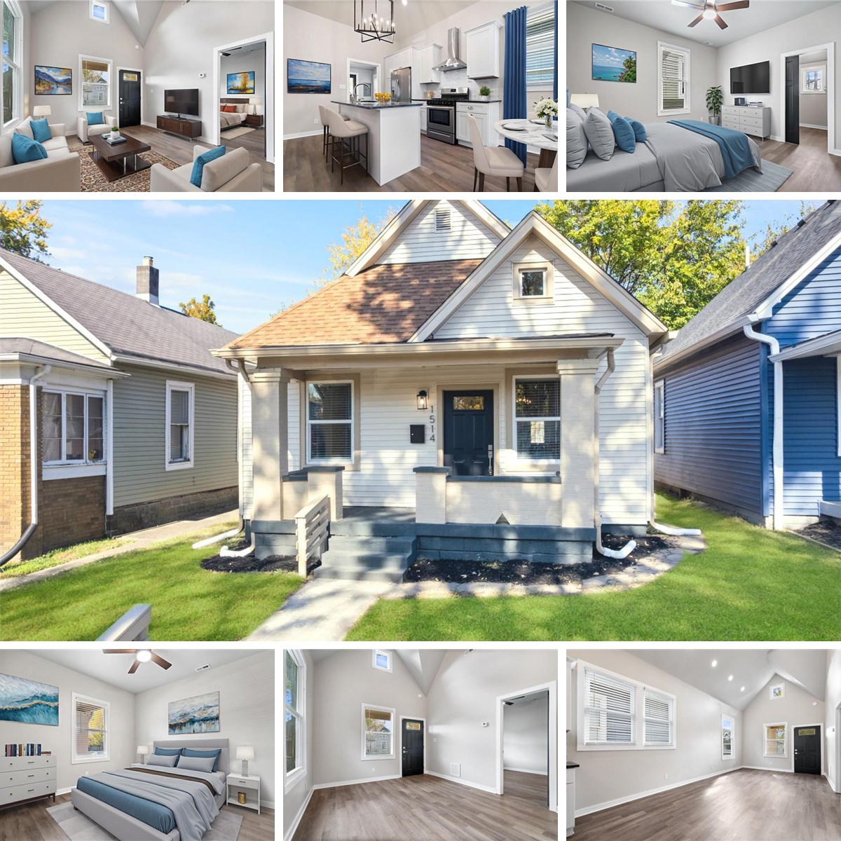 Enjoy the vaulted ceilings in this renovated historic home on Indy's South Side, close to Fountain Square, Garfield Park, and Pleasant Run Trail. Inside you will find open living space and a brand new kitchen with upgraded soft close cabinetry, granite tops, tile backsplash and a center island with breakfast bar. Stainless steel appliances included. The Primary Bedrooms features a large walk-in closet. Ceiling fans in both bedrooms. And a separate laundry room on the main level. New flooring and fresh paint. 8 new windows. New AC and water heater. Covered front porch, back patio, fenced backyard, a parking area and a new fire pit. Get in just in time for the holidays!