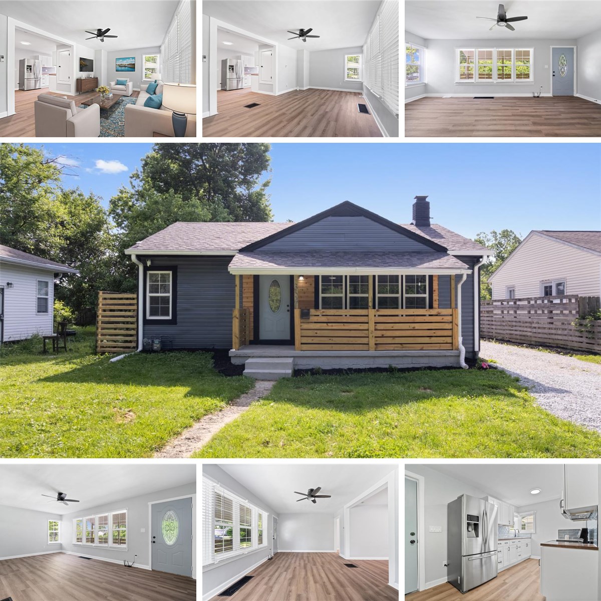 Beautifully renovated 4-bed, 2-bath home with a freshly painted exterior, new roof, gutters, trim, and doors. Enjoy the rebuilt front porch, concrete back patio, and mostly fenced backyard with a 1-car detached garage and fresh gravel driveway. Inside boasts a brand-new kitchen with stainless appliances and tile backsplash. Nicely updated bathrooms, finished basement with a waterproofing system, new furnace/AC, 200 AMP service, all-new plumbing/electrical, flooring, and lighting. Stylish finishes throughout make this home move-in ready.
